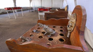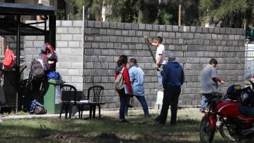 Afuera, en cambio, los trabajos no cesan. Allá están quienes arman una pantalla gigante para proyectar películas en el área de recreación del centro. Pasa un camión y a un costado una motoniveladora. Y más atrás los siete u ocho albañiles que construyen un espacio de duchas, para sumar a los recién inaugurados baños de caballeros y damas. Las estructuras están a estrenar porque la provincia entregó la obra de refacción de los galpones 1, 2 y 3 a principios de este mes. La calefacción central, bien arriba de los salones, brilla con total oportunismo de cara al invierno que se viene.