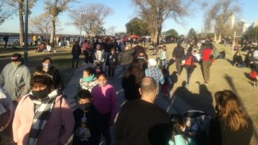 Este fin de semana, pero sobre todo el domingo, los espacios públicos se abarrotaron de rosarinos y si bien al principio hubo un buen acatamiento en los sectores que se pintaron círculos en el césped para delimitar a los diferentes grupos, en horas pico todo se desbordó. Y también se vieron las clásicas rondas de mate entre personas que no son convivientes.