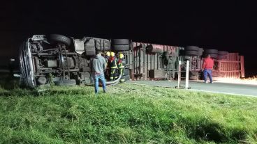 En la madrugada de este miércoles, se produjo el vuelco de un camión Mercedes Benz en el kilómetro 352 de la Autopista Rosario - Córdoba, en la mano hacia Rosario. Eso provocó que el corte total de la traza nacional.