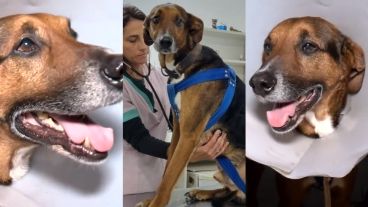 En Telenoche (El Tres) Ramiro, quien se hizo cargo desde un principio del perro con su grupo "Salvá a un peludito", pide colaboración para costear los gastos y así ayudar a la próxima adoptante de Crush. "Fue operado de cálculos y ahora se tiene que recuperar al menos por tres meses", dijo.