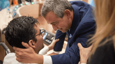 Estoy en un tratamiento de rehabilitación casi 360º, por un lado lo motriz y lo respiratorio. Además sigo con mi fonoaudióloga y terapia. Es un tratamiento integral que me ayuda a mitigar muchos de los síntomas de la Miastenia que siguen presentes en mi día a día. Metas cortas, ubicar mojones sobre cómo me estoy sintiendo para trazar un camino en un campo desierto. También sé que nunca seré el mismo de antes. Y en eso quiero agradecer a la comunidad en torno a la Miastenia la hermosa cualidad de ayudarnos y de estar, y a todo el equipo médico por el apoyo, el amor y la dedicación. Uno forma una familia con todos.
