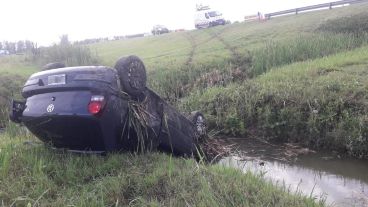 Según informó El Tres, ambos accidentes ocurrieron este viernes entre las 7.30 y las 8.15 en el kilómetro 301 de la autopista a Córdoba, a la altura del arroyo Ludueña. El primero ocurrió en la mano hacia la vecina provincia. Un hombre que manejaba un Volkswagen Gol negro intentó esquivar un objeto, perdió el control del volante y terminó en la zanja. Pudo salir por sus propios medios y a pesar de algunos golpes, estaba bien de salud. Pero el coche quedó totalmente arruinado.