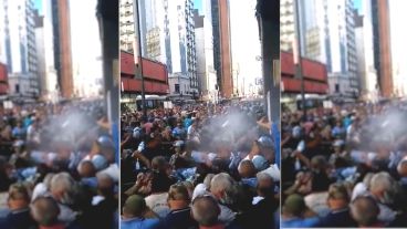 La policía explicó que el enfrentamiento inició alrededor de las 15.30 cuando “se había consensuado que ingresen 16 referentes, pero detrás de ellos se quisieron meter más y se les cortó el acceso; se formó un cordón para evitar el ingreso” en la Agencia 7 del PAMI, ubicada en el cruce de la Avenida Corrientes y Florida.