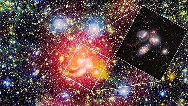 El hallazgo se realizó mientras los científicos estudiaban el Quintento de Stephan, un conjunto de galaxias situado a unos 10.000 años luz de la Tierra, en la constelación de Pegaso. Según detalla el organismo, la enorme nube de átomos de hidrógeno mide cerca de 2 millones de años luz, unas 20 veces más que la Vía Láctea.