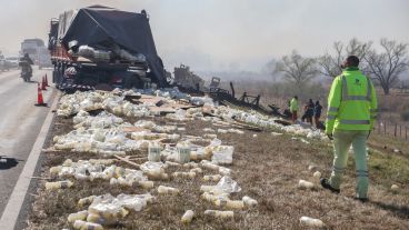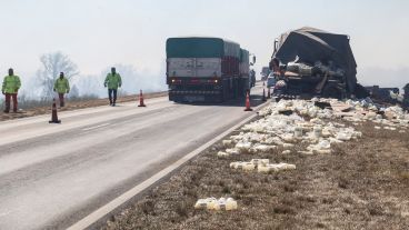 Por razones que se tratan de establecer, los rodados colisionaron de frente. Ambos conductores, oriundos de Gualeguaychú, fallecieron en el acto. Uno de ellos transportaba packs de botellas de agua saborizada que terminaron desparramadas.