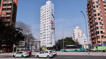 “Era una pared muy difícil por su verticalidad. La imagen elegida resuelve todo: tiene una cinta larga, una cruz, un brazo que sale del plano y se conecta con el cielo”, detalló el artista, de 44 años, especializado en hiperrealismo.