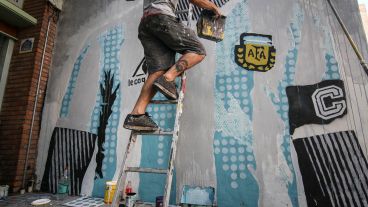La flamante obra se encuentra en Maipú entre 9 de Julio y y 3 de Febrero, tiene una altura de cinco metros y la hizo el artista local Lacast, quien es fanático del Diego. "Es una demostración de cariño hacia él", dijo. La gente pasa y no se resiste a sacarse una foto junto al mural. Las imágenes