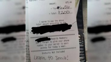 Por supuesto, la gran mayoría de los clientes no solo entiende lo que pasan los trabajadores gastronómicos y agradecen el esfuerzo. Este no fue el caso. Además de quejarse por la “falta de sonrisa”, mientras usaba barbijo, le dejó una propina baja, de alrededor del 7%. En Estados Unidos se suele dejar el 15%, por lo que claramente fue una forma de demostrar su disconformidad.