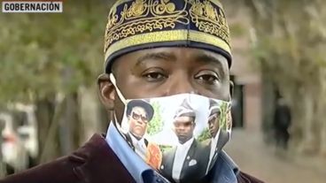 Lo llamativo fue que el tapabocas que llevaba tenía sublimada la imagen de los africanos conocidos como “los negros del ataúd”, protagonistas de los memes más difundidos en redes sociales este año.