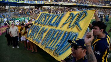 Familiares y amigos de Carlos Orellano entraron este domingo a la cancha de Rosario Central, antes del partido con Arsenal, para reclamar justicia por el joven que la semana pasada salió a bailar a La Fluvial y poco después fue hallado muerto en el río.