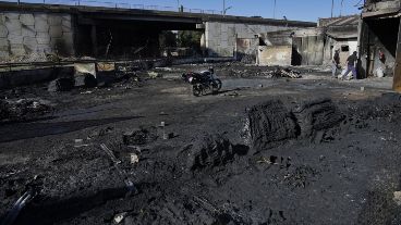 Las inmediaciones del depósito de plástico que se incendió este martes a la noche en la zona oeste de la ciudad de Rosario, debajo del viaducto Che Guevara que da inicio a la autopista a Córdoba, también se vieron afectadas por las llamas.