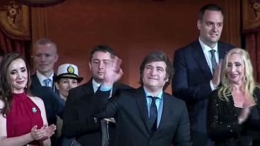 Ya en el interior del auditorio recibieron con aplausos al primer mandatario, quien se ubicó en el palco donde lo esperaba Villarruel y allí saludó a los asistentes que coreaban "libertad, libertad".