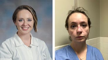 Kathryn es una enfermera de 27 años que trabaja en Tennessee, Estados Unidos, y llamó la atención con un contundente posteo en su cuenta de Twitter: "Cómo empezó, cómo está yendo", escribió en un tuit para describir dos fotos que muestran el grado de deterioro y cansancio del que da cuenta su rostro.