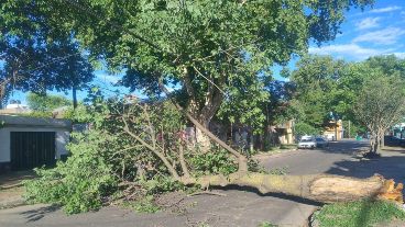 "Cayó en la calzada, y comprometió columnas a un lado y al otro de la calle, y un vehiculo fue dañado por las ramas y hojas", precisó un vecino de la zona.
