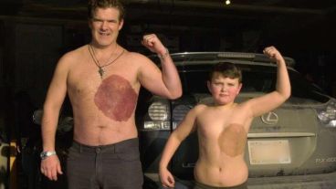Derek Prue el padre que se sometió a ocho semanas para tatuarse la misma mancha de nacimiento que su hijo se viralizó en las redes. Su hijo, que se llama igual que su papá, tenía pudor para meterse a la pileta por su marca que tenía del lado izquiero de su torso.