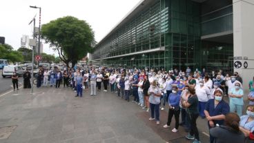 Trabajadores de enfermería reiteraron este martes por la mañana un viejo reclamo que, en medio de la pandemia de coronavirus, resulta aún más apremiante. Piden ser reconocidos como profesionales de la salud y de riesgo.