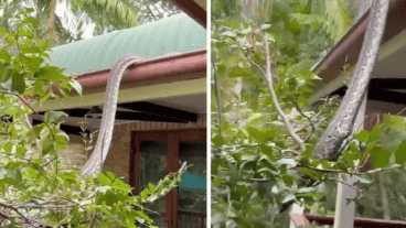 En el video que se volvió viral en TikTok y Twitter, se ve a la familia atónita al ver a la pitón deslizarse por las copas de los árboles, muy por encima del suelo, tras cruzar por el techo, según publicó el diario británico Daily Mail.