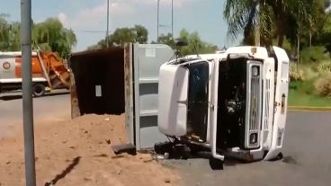 Un camión que transportaba tierra volcó en el mediodía de este miércoles en la Bajada Escauriza sin que se registren heridos.