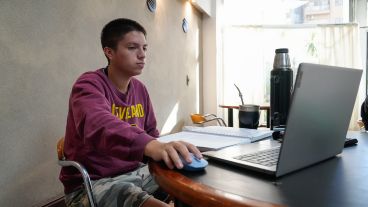 Toman mate de a tres en una de las mesitas del comedor, entre apuntes y biromes. Algo del sol de abril se mete desde el solarium, donde una pileta sin uso, el césped sintético y un par de palmeras hacen imposible olvidar el pasado reciente. Tampoco la decena de pisos que se suceden al cielo y albergan habitaciones para 110 personas. El espíritu de hotel sobrevuela a pesar del “calor de hogar” que le irrigan los huéspedes, como Juan Manuel de 19 años, proveniente de Colombia, Iana de 18 años de San Jorge y Jennifer de 20, llegada desde El Trébol. Los dos primeros son estudiantes de Medicina, la otra chica cursa cuatro año de Psicología.