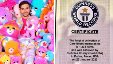 Nicholas Cherrywood de 27 años, es de Dallas, Texas, Estados Unidos. Posee una enorme colección de peluches de los "ositos cariñosos", cambió su nombre para estar vinculado para siempre a uno de ellos y fue incluido en la nueva edición de los Guinness World Records 2024.