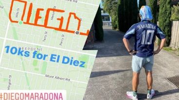 Un nuevo homenaje luego de la muerte de Maradona se viralizó en internet. Diego Benítez de 40 años, que vive Melbourne, Australia, decidió correr 10 kilómetros y, con su recorrido, formar el nombre de Diego, con el número 10 al lado.