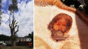 El aprendiz de podador de árboles, Callum Johnson, de 16 años, formaba parte de un equipo que cortaba un álamo de gran altura en las casas en Wantage, Oxfordshire, Reino Unido, cuando vio el "rostro de Jesús" en los anillos de una de las ramas.
