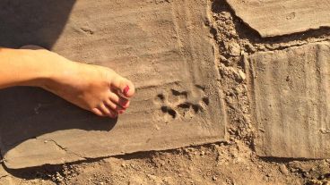 Otro hallazgo inesperado fue las huellas de perros y una cabra en el suelo. Probablemente, los animales caminaron sobre las baldosas antes de que el material fue arrojado al fuego y después fue colocado en el suelo. Además, fue encontrado un dibujo de una gallina o un pato, hecho con dedos.