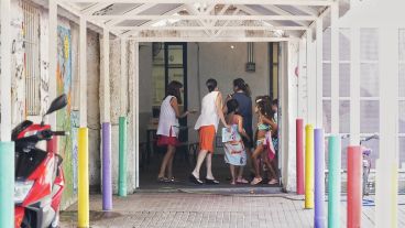 Fotogalería: malla, ojotas y manguereada en el recreo de la Gurruchaga para aliviar el calor