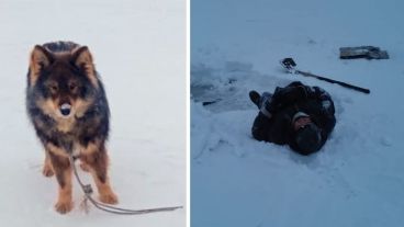 Se cree que el dueño del perro se cayó mientras estaba haciendo un agujero para pescar, posiblemente tras sufrir un derrame cerebral. Lo hallaron con un corte en el lado derecho del cuerpo, detalló el Servicio de rescate de la región.