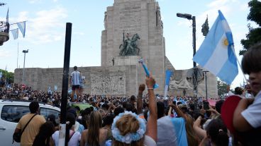 De todas formas, la multitud que colmó el Monumento para manifestar su alegría fue ocupando todos los lugares posibles y muchas personas se ubicaron en las partes altas y entre las esculturas que rodean el emblemático espacio de la ciudad.