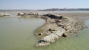 Una parte sumergida de la antigua ciudad romana de Augusta, cuya historia se remonta siglos atrás, resurgió después de que el nivel del agua del lago de Seyhan descendiera debido a la sequía en Adana, al sur de Turquía.