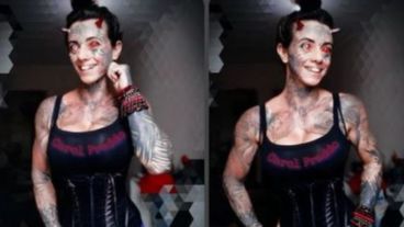 Pero para convertirse en la mujer diablo no alcanzó con los tatuajes y tuvo que ir más allá: tiene pigmentación ocular de color rojo (tatuaje del globo ocular), hendidura de lengua, dientes con coronas metálicas y cuernos en la frente (implantes transdérmicos).