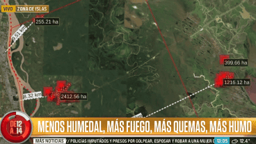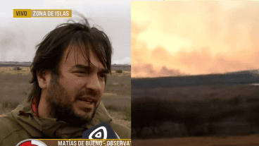 Tras ese diálogo con De Bueno, pasadas las 13, la periodista Almudena Munera contó en vivo desde las islas que se había generado un nuevo foco. Al combate de los brigadistas se sumaron el helicóptero y el avión hidrante.