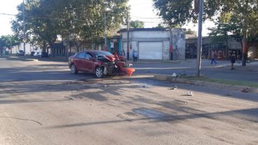 La esquina de Provincias Unidas y Rueda, en barrio Urquiza, fue escenario este viernes por la mañana de un fuerte accidente de tránsito cuando un automovilista intentó esquivar a un motociclista y se estrelló contra una columna. El auto quedó casi totalmente destruido y el motociclista resultó herido en una de sus piernas. El conductor del coche habría salido ileso.