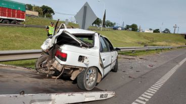 Este lunes por la mañana se registró un fuertísimo choque en Circunvalación y Uriburu. Un auto blanco terminó contra el guaradarrail, muy dañado. En ese mismo lugar, hace apenas unas tres semanas se contaron dos muertos en una colisión entre motos.
