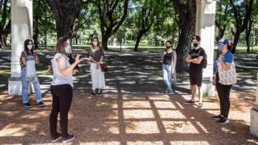 Ceñidas a estas medidas, 10 personas pudieron recorrer el monumento a Belgrano y los alrededores del Jardín de los Niños, del laguito, de los museos Julio Marc y Castagnino, y el Jardín Francés.