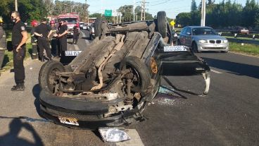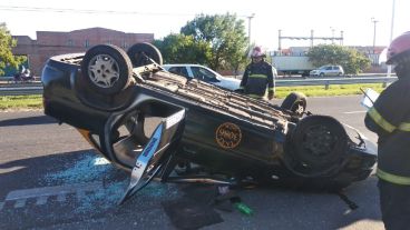 Involucró a tres vehículos: un taxi, que quedó ruedas para arriba sobre la calzada, y un auto particular que terminó en la banquina.