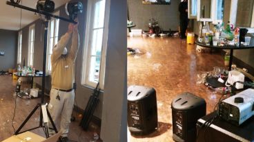 Del estudio de arquitectura se incautaron parlantes y elementos que fueron usados para el evento clandestino.