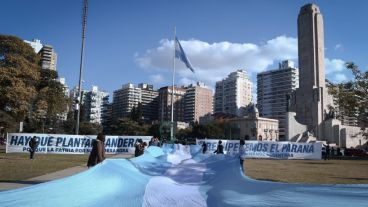 La manifestación de representantes de gremios, organizaciones sociales y políticas comenzó cerca de las 15 en el Monumento a la Bandera y, según contaron los participantes, fue parte de una serie de actividades previstas “a lo largo y ancho de la provincia para plantar bandera por la recuperación de nuestro río”.