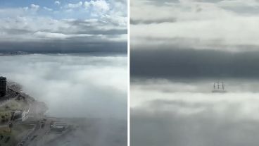 Al ver las imágenes queda la sensación de que la corbeta estaba suspendida en el aire, avanzando entre las nubes. La mujer que registró el momento lo hizo desde la torre de Manantiales, en dicha localidad.