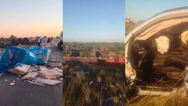 Un impactante siniestro vial ocurrió este sábado por la mañana en el kilómetro 19 del enlace vial Rosario-Victoria (Ruta Nacional 174), en donde quedaron involucrados en el choque un automóvil de alta gama y tres camiones.