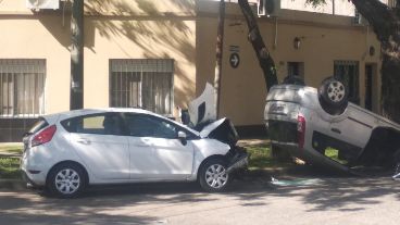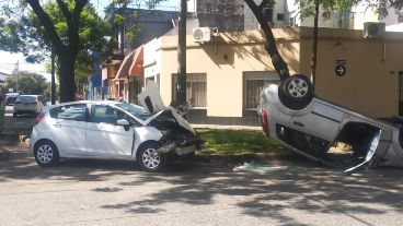 Este martes se registró un choque y posterior vuelco entre dos vehículos. En el accidente participaron dos autos, dejando hasta el momento una persona herida, que fue trasladada a un centro de salud aparentemente con golpes leves.