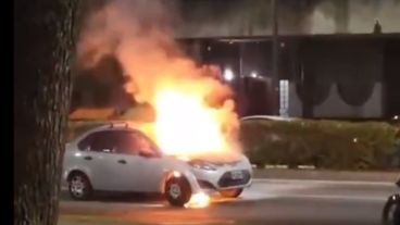 Por motivos que se intentan desentrañar, el coche tomó fuego y en pocos segundos las llamas casi lo habían consumido.