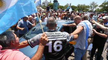 Los ruralistas, que estaban reunidos cantando el himno y algunos de ellos parados sobre la calle, bloqueando de forma parcial el tránsito, reaccionaron cuando el hombre detuvo su auto y se bajó para gritarles.