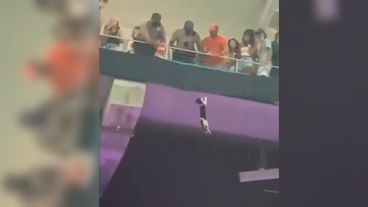 Varios videos muestran al felino luchando por no caer al vacío ante la atenta mirada de los asistentes, quienes amortiguaron su caída con una bandera de EE.UU.