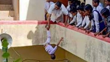 El director de una escuela privada en la ciudad de Mirzapur, en el estado Uttar Pradesh, la India, sujetó boca abajo a un alumno de cinco años desde un balcón a modo de castigo. El incidente salió a la luz después de que un testigo subiera la foto a la Red.