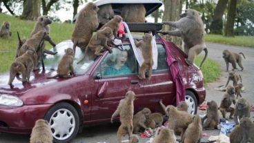 El refrán se hizo realidad: "más peligroso que mono con navaja"; en este caso, cuchillos. El paseo por el parque de safari Knowsley, en Inglaterra, se volvió una visita riesgosa. Es que varios turistas pudieron ver a algunos monos babuinos con cuchillos y destornilladores destrozando vehículos.