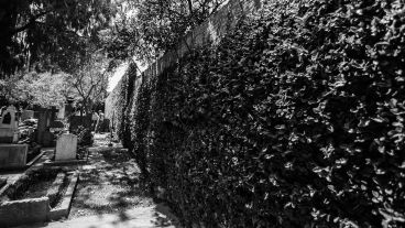 Del lado del cementerio, la enredadera sobre la pared es una alfombra verde que se funde con mil árboles, plantas, arbustos podados con formas, flores y tumbas de mármol. Los restos de los Cerdán y los Ibáñez miran hacia Avellaneda. Sobre Pasco se suceden los Cimolai, Tuseli, Hatar y, un poco más atrás, como a la altura de la puerta negra, los Miguel y los Pérez. Todos ellos están a salvo desde que las autoridades de Disidentes decidieron cerrar el ingreso por los robos y ahora hay que tocar el portero eléctrico para entrar al hermoso predio.
