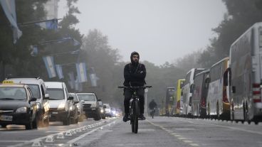 Las ruedas de los autos hacen un ruido particular al frenar por la presencia de humedad en las calzadas. Los que van en bicicleta. imparables, andan con más cuidado porque se pueden resbalar.