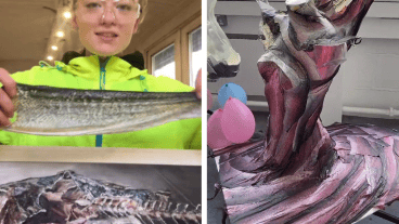Isabella Taylor crea vestidos con piel de salmón y dice que la sustentabilidad es su principal prioridad. La joven británica visita pescaderías y ahumaderos para recolectar piel que de otro modo se desecharía para crear sus diseños poco convencionales.